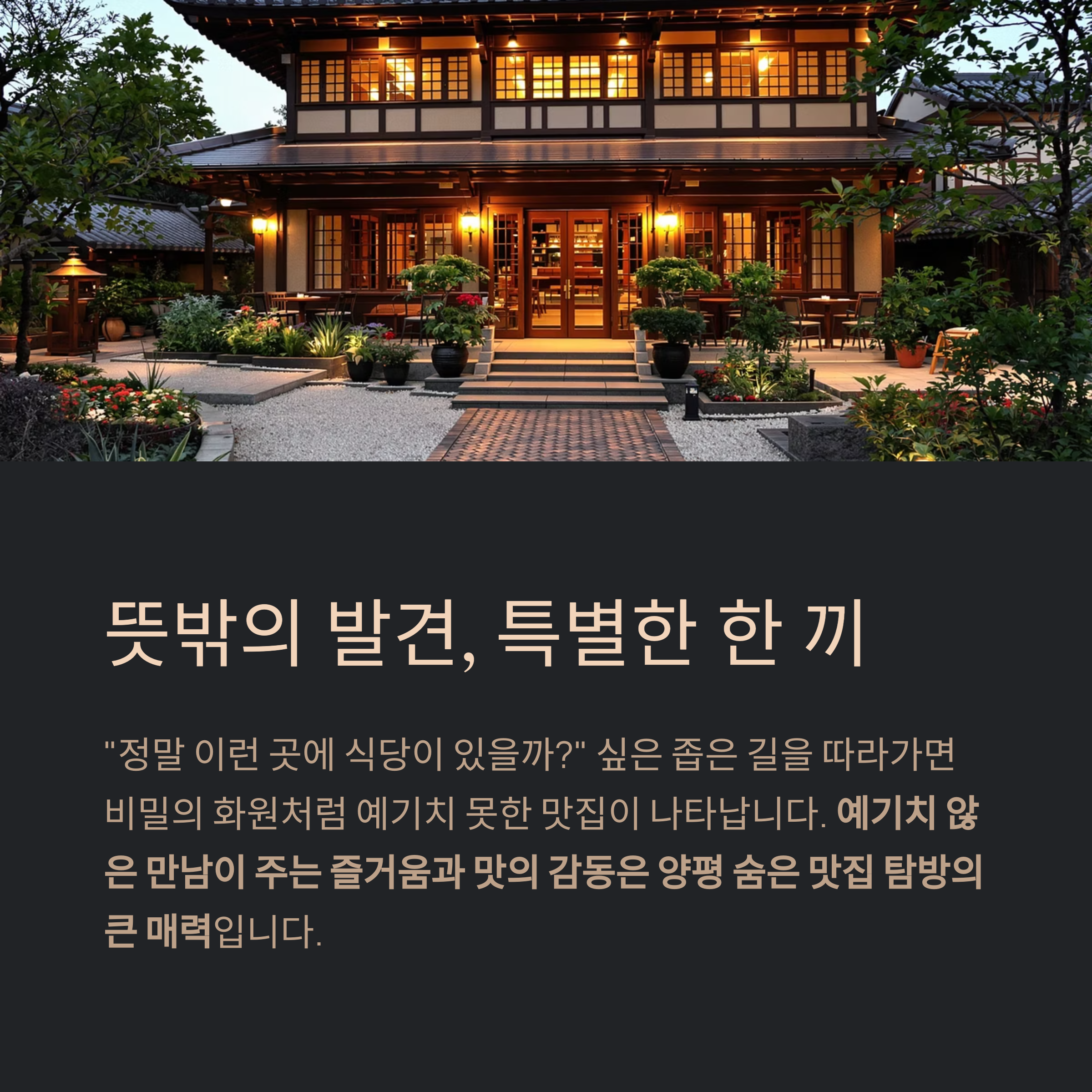 여러분의 양평 미식 경험을 한층 더 풍요롭게 만들어 줄 비밀스러운 장소들을 지금부터 공개합니다.