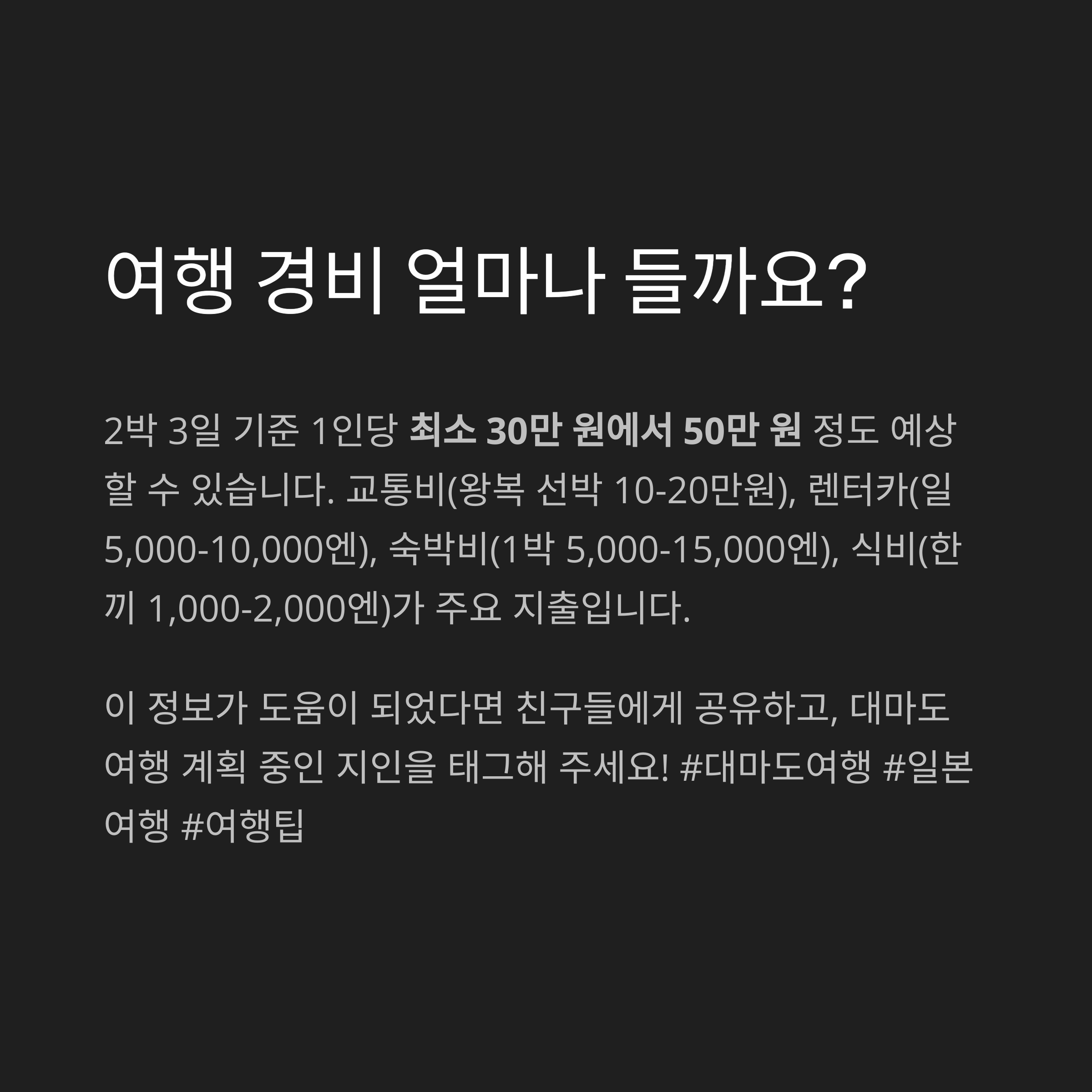 대마도 여행 경비, 얼마나 들까요?