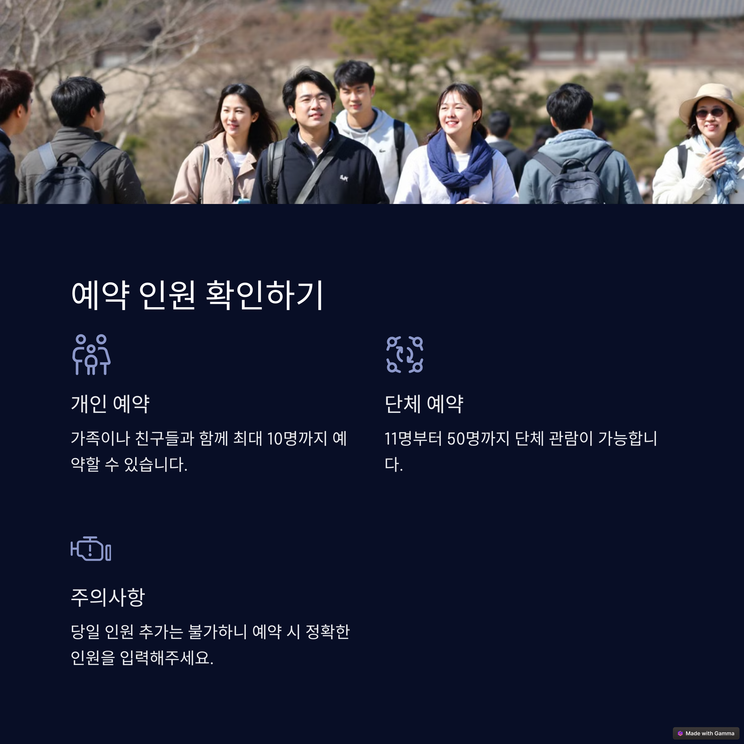 | 예약 방법 | 청와대 개방 공식 홈페이지에서 예약 가능 |