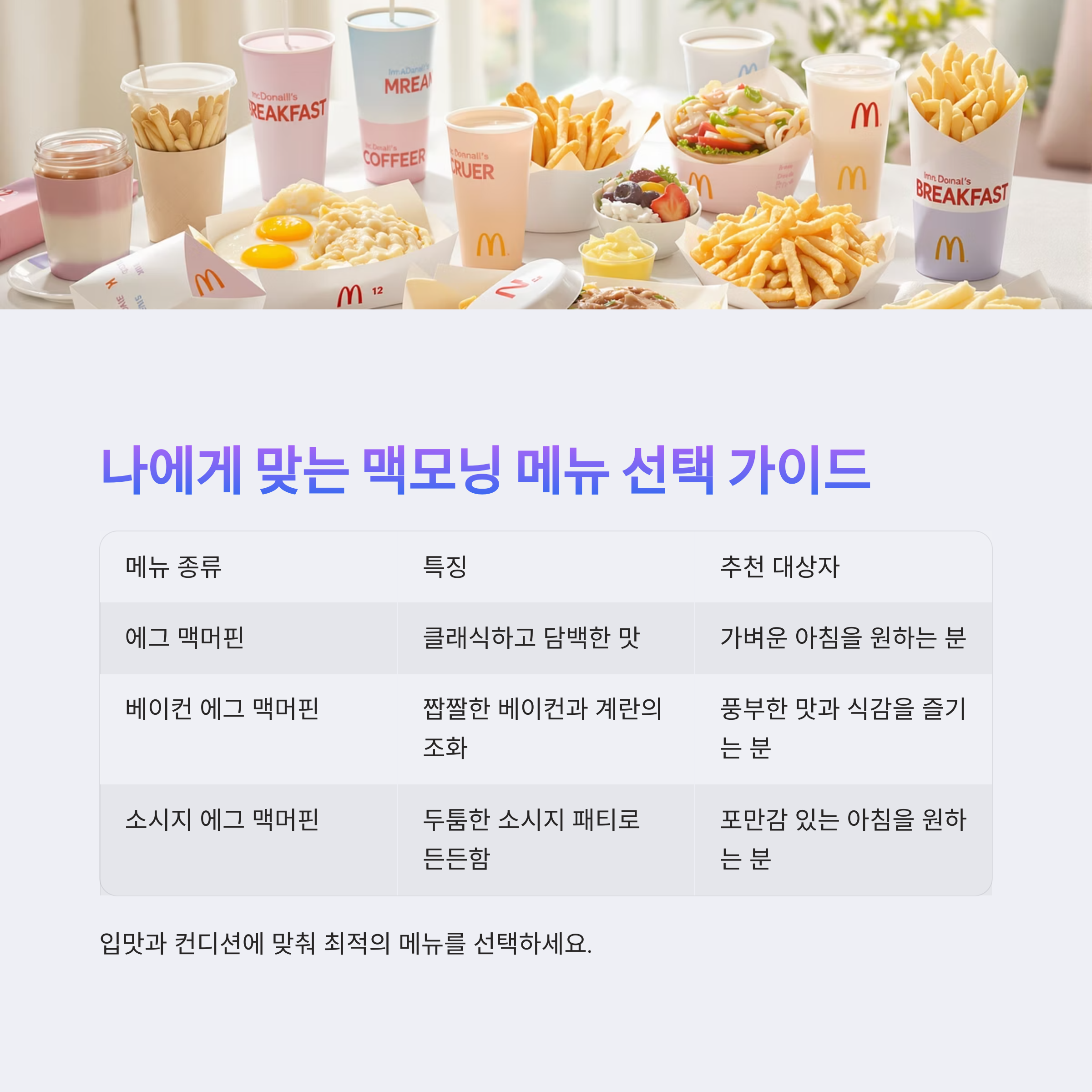 나에게 맞는 맥모닝 메뉴 선택 가이드