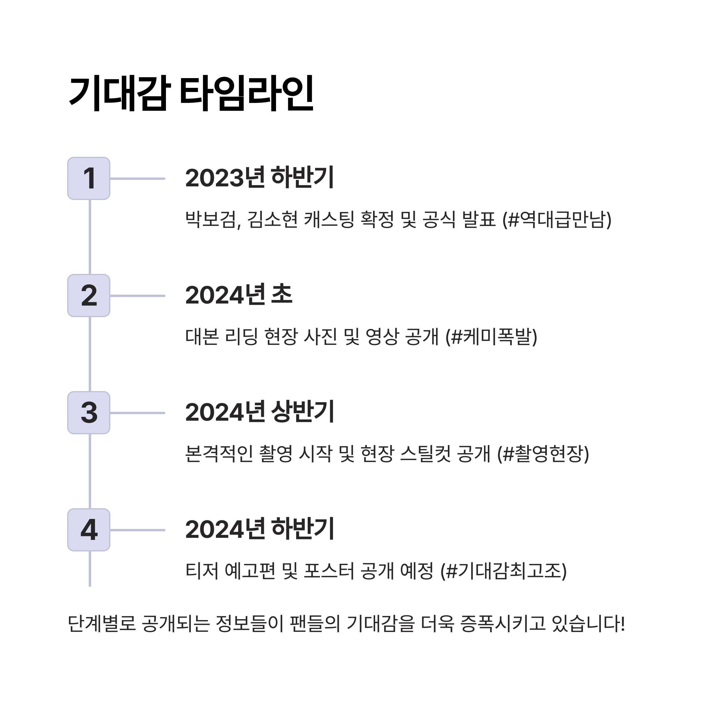 | 2024년 초 | 대본 리딩 현장 사진 및 영상 공개 | #케미폭발 #첫만남설렘 |