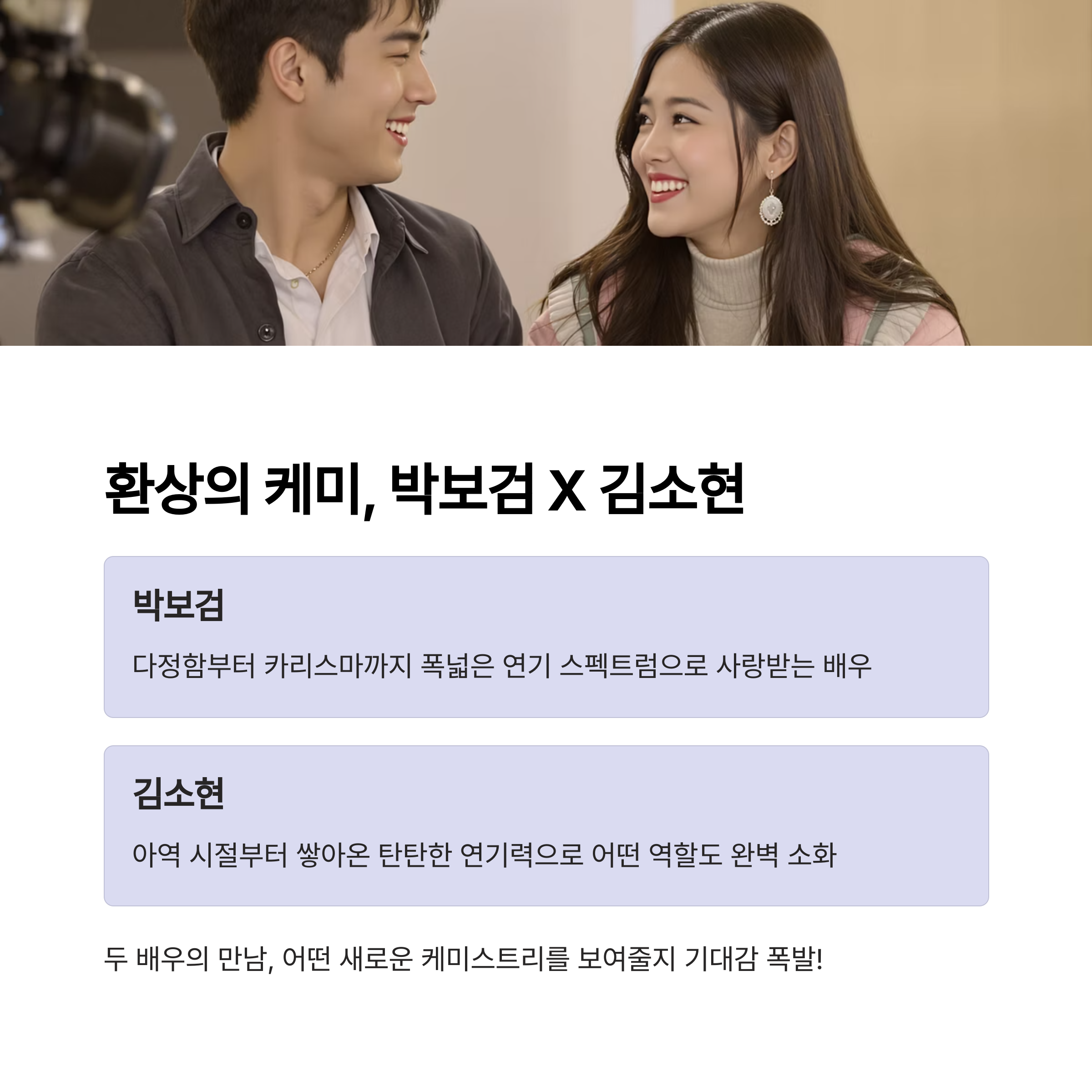 이 두 배우가 만나 어떤 새로운 케미스트리를 보여줄지, 그 시너지 효과에 대한 관심이 집중되고 있습니다.