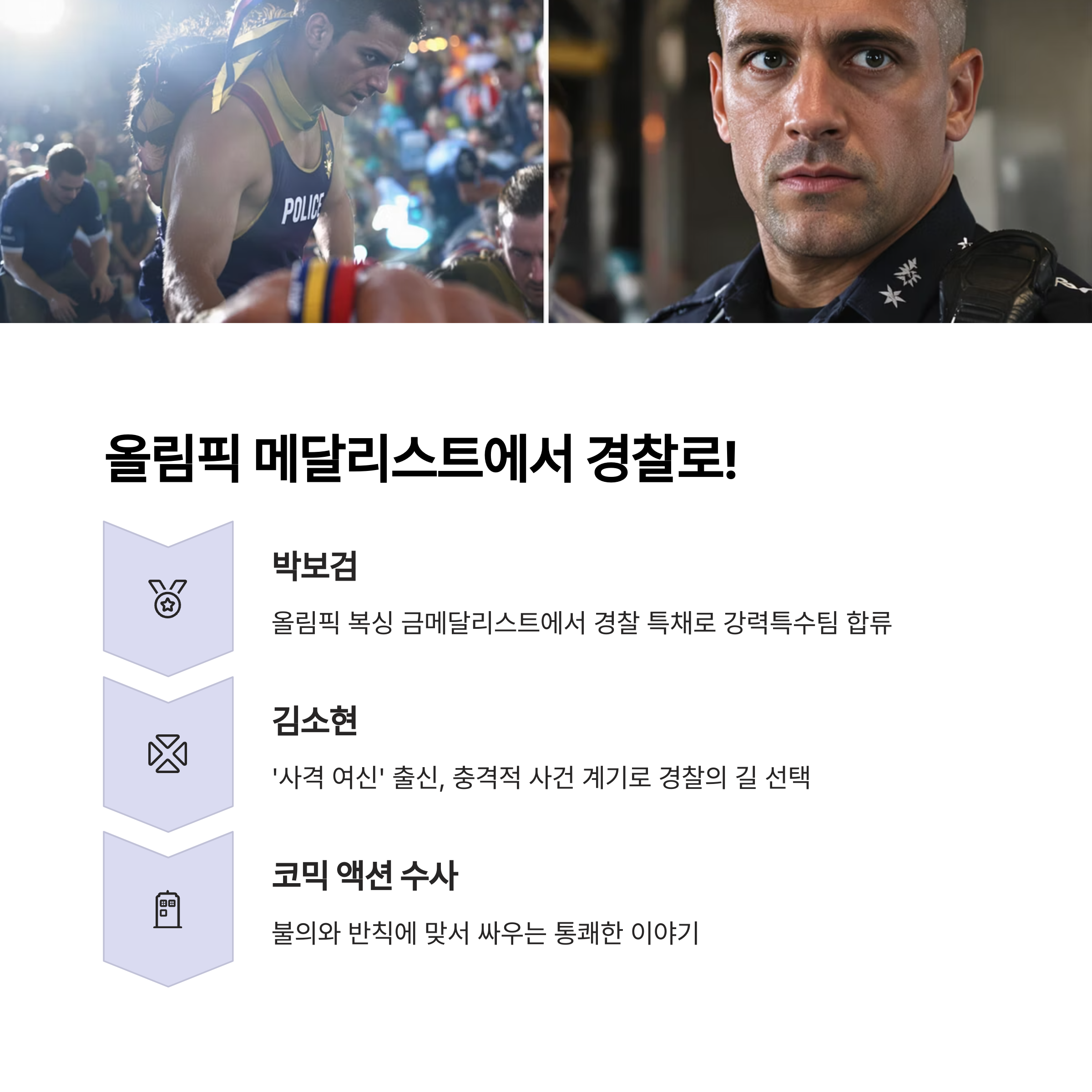 | 매력적인 설정 | 올림픽 메달리스트 출신 경찰이라는 독특한 캐릭터 설정 | 신선함과 흥미 유발, 캐릭터 몰입도 증대 |