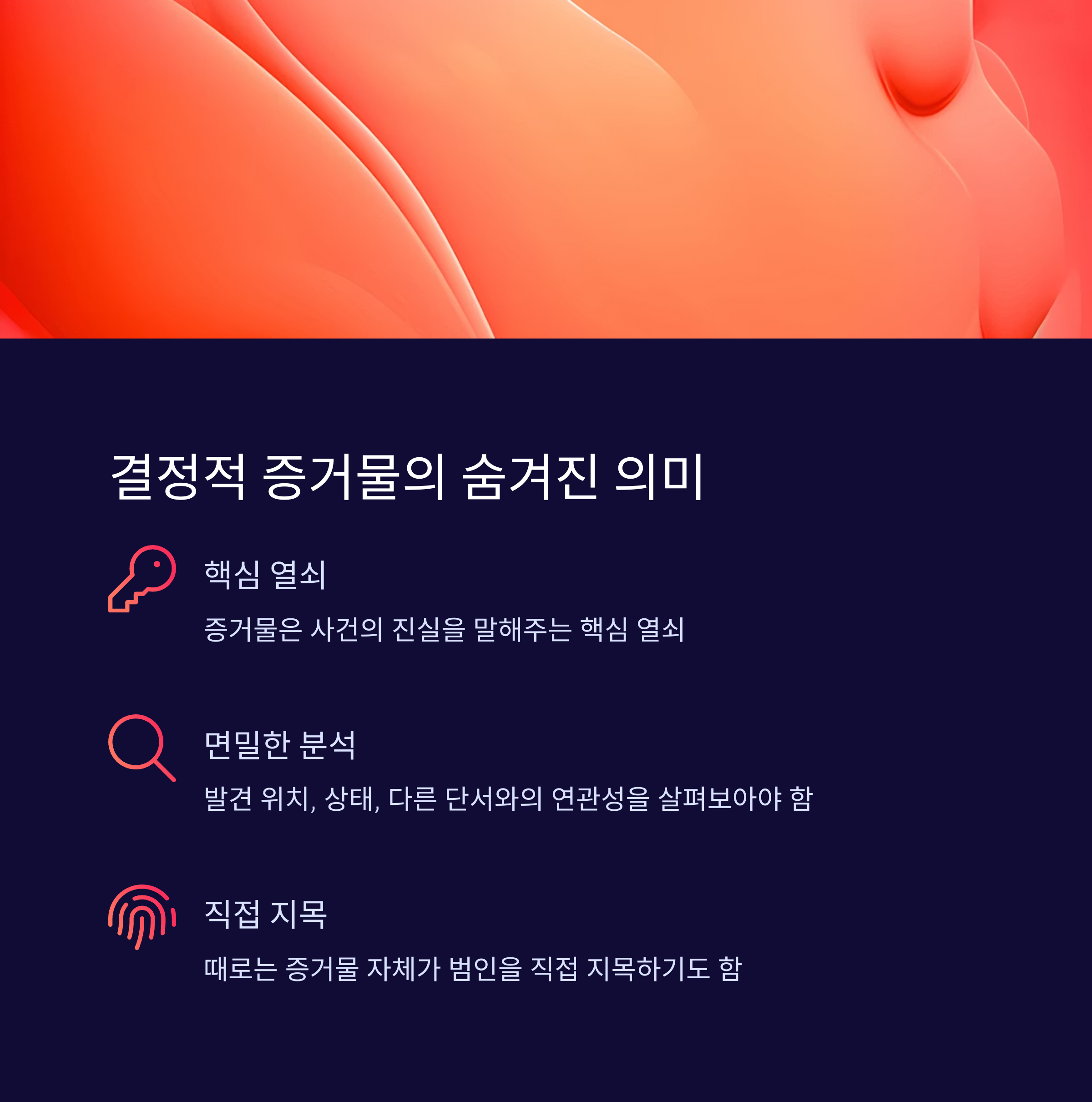 단순한 물건처럼 보일지라도, 그 안에는 범인의 정체나 범행 동기, 사건의 경위를 파악할 수 있는 중요한 정보가 숨겨져 있을 수 있습니다.