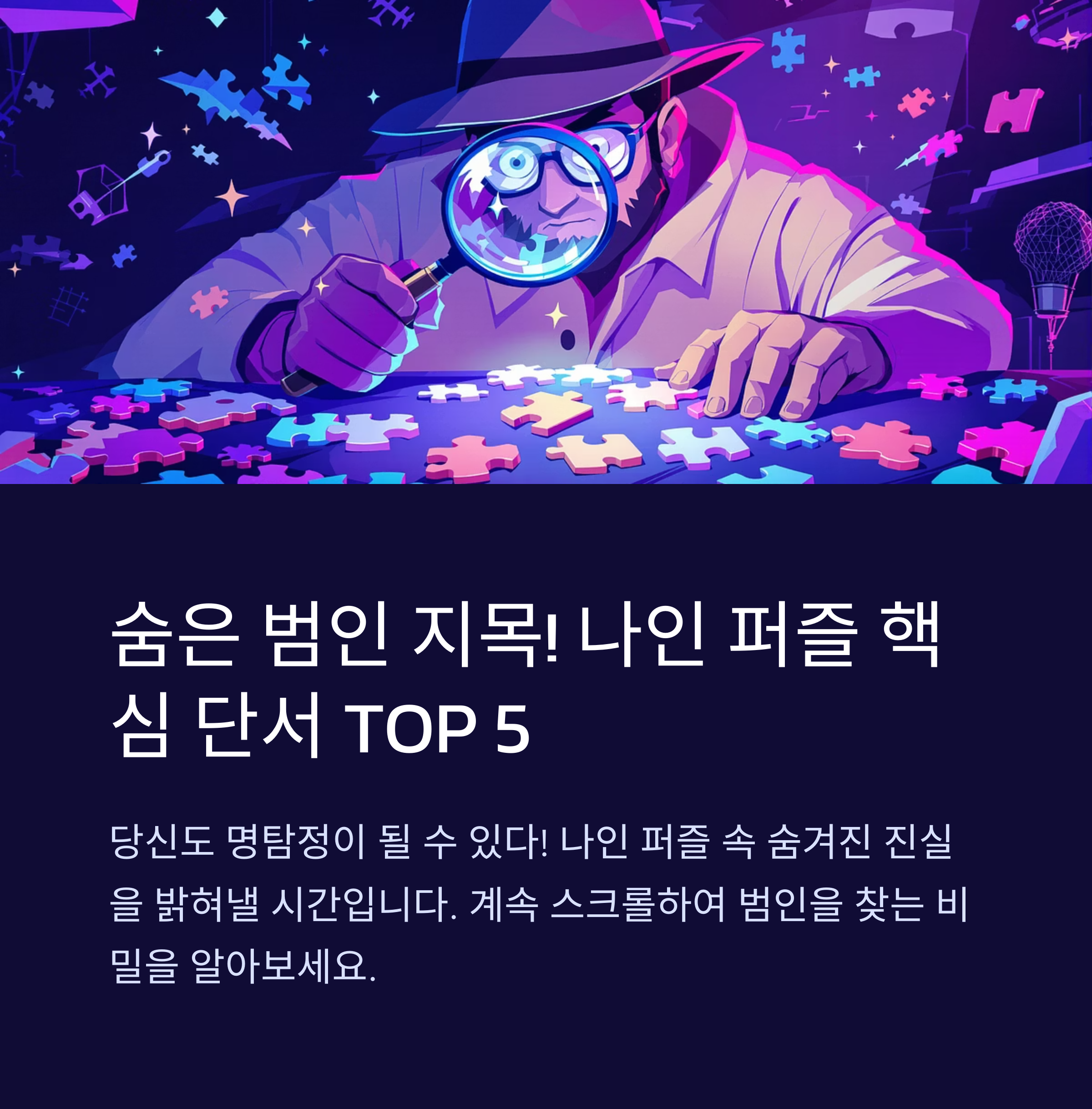 나인 퍼즐 게임에서 범인을 정확히 추리하기 위한 핵심 단서 5가지를 집중적으로 분석합니다.