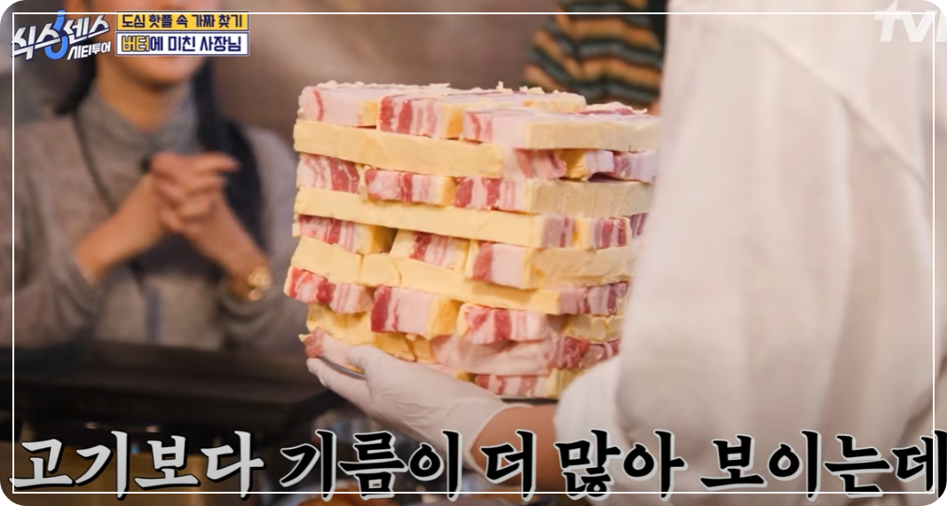 - 특징: 삼겹살 위에 ‘버터 젠가’를 쌓아 퍼포먼스처럼 구움