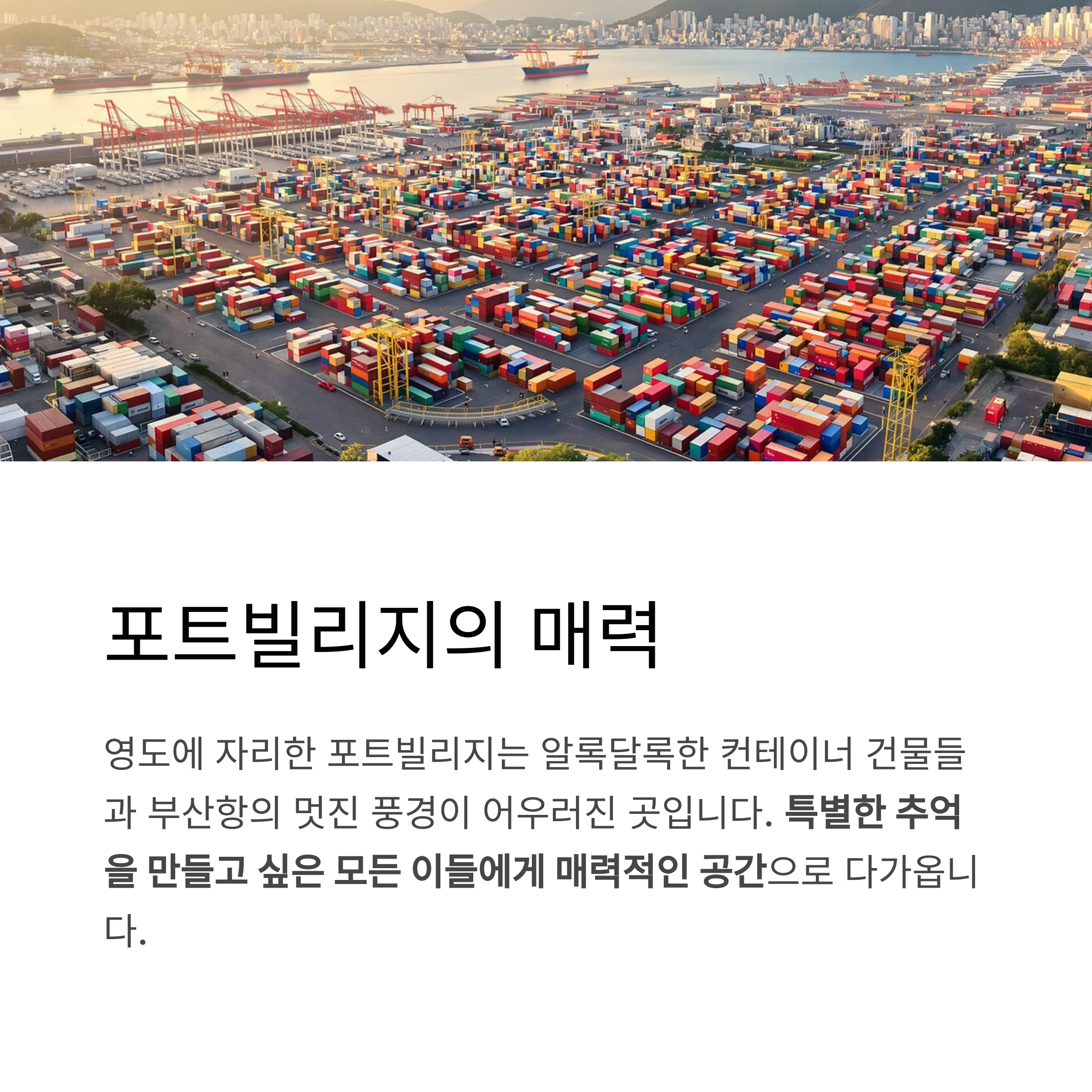 포트빌리지 부산, 첫인상과 매력 포인트