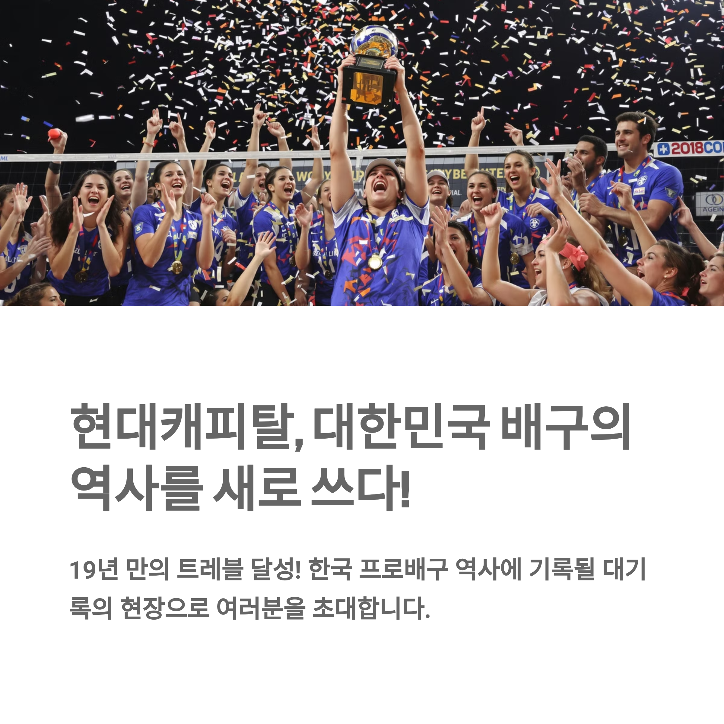 19년 만의 통합우승과 함께 이루어낸 트레블... 현대캐피탈이 한국 프로배구의 새로운 강자로 우뚝 서는 순간을 우리는 목격했습니다. 앞으로도 현대캐피탈이 이러한 성과를 바탕으로 어떤 새로운 역사를 써 내려갈지 정말 기대가 되네요!