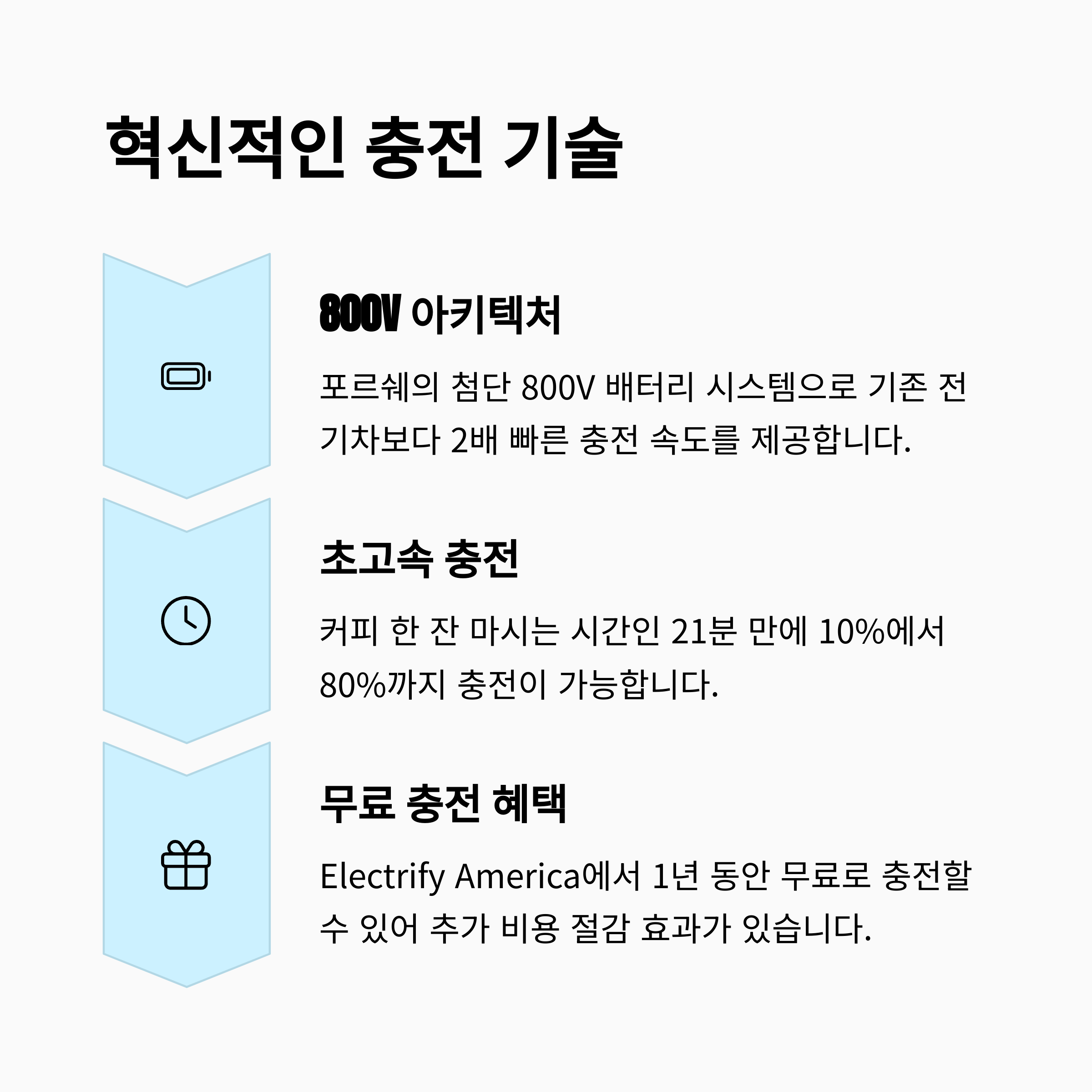 | 800V 초고속 충전 | 10%에서 80%까지 약 21분 만에 충전 가능합니다. |